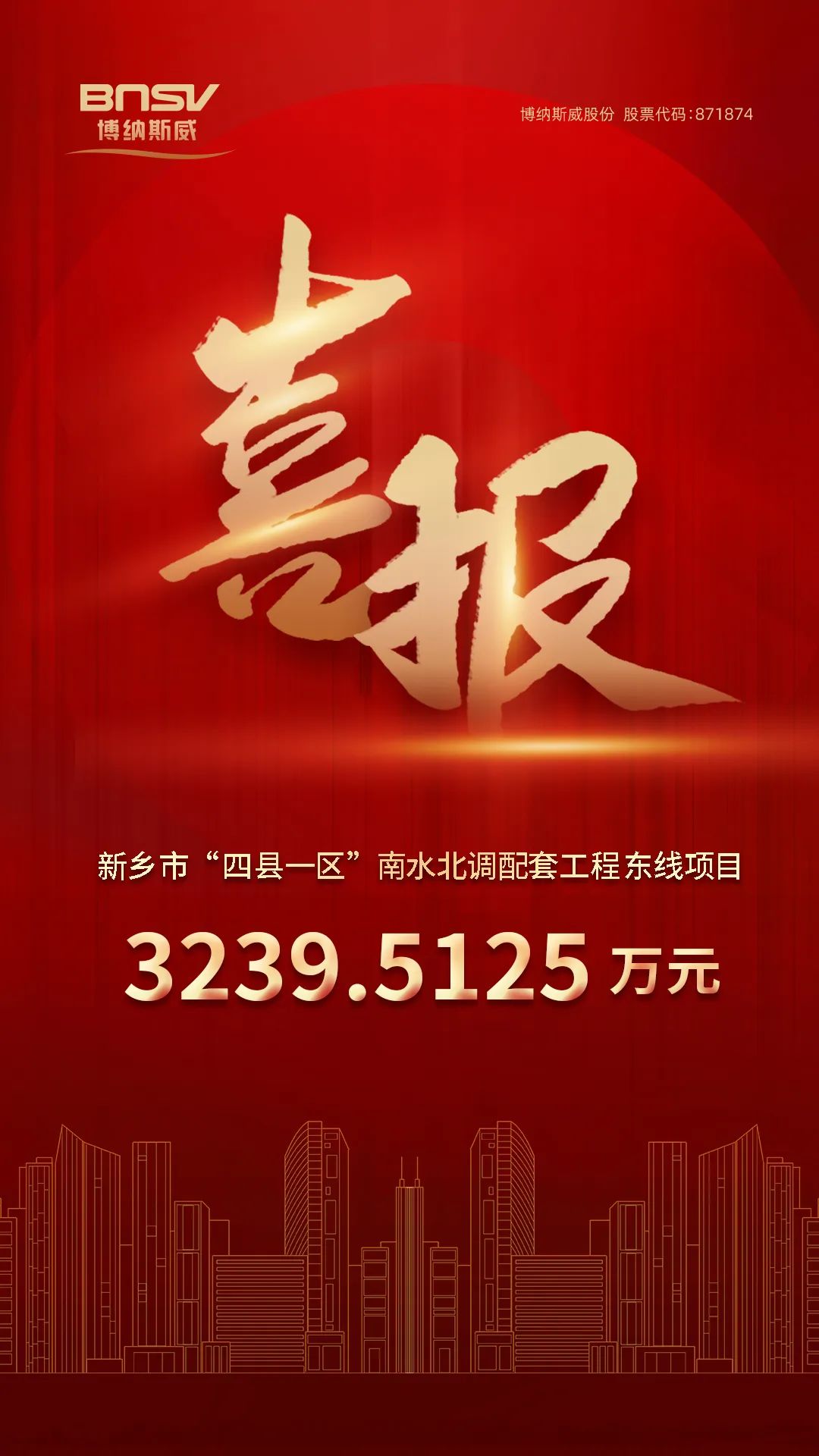 喜報!博納斯威中標新鄉(xiāng)市“四縣一區(qū)”南水北調(diào)配套工程東線項目3239.5125萬元