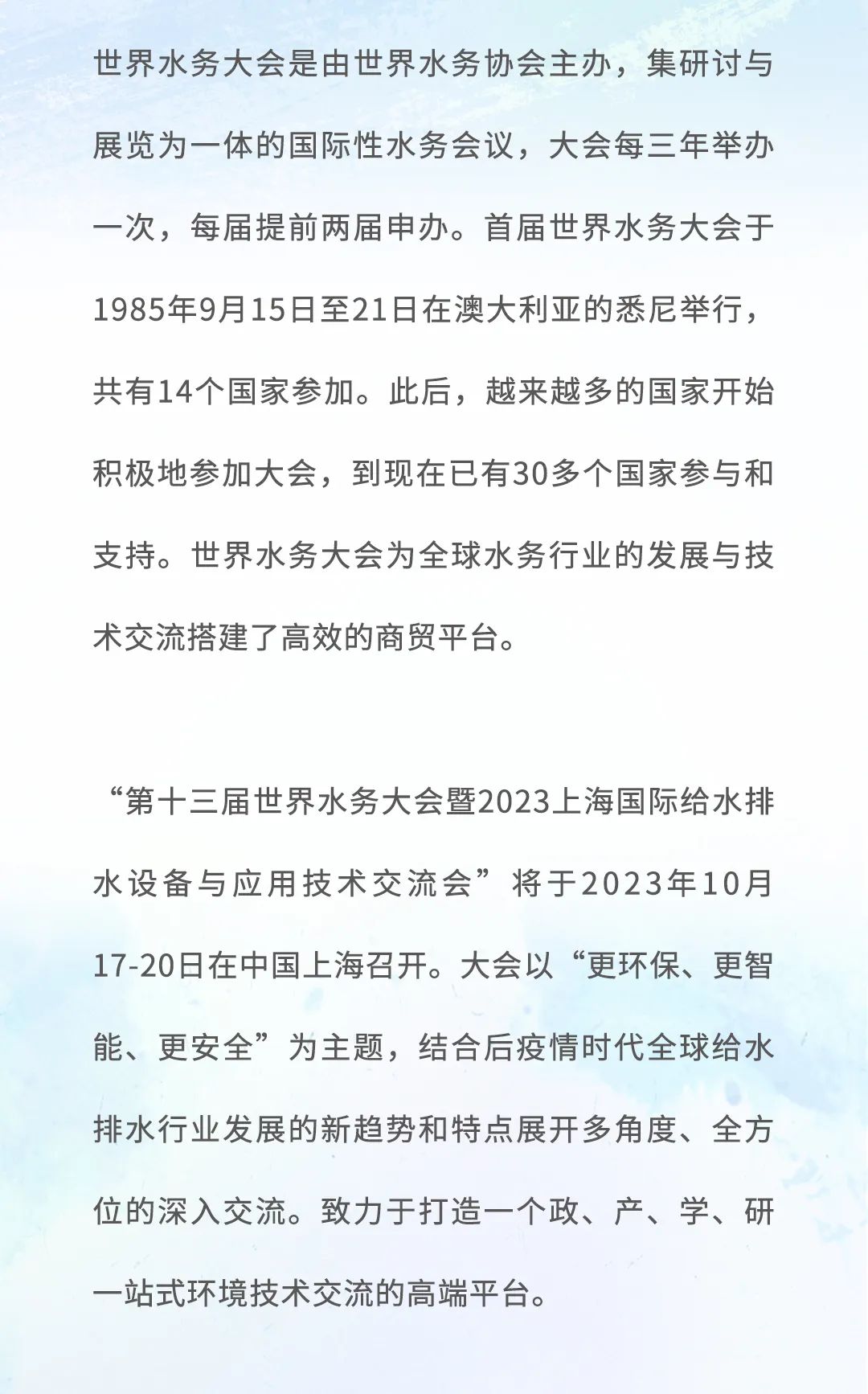 博納斯威|邀您相約WPC第十三屆世界水務大會