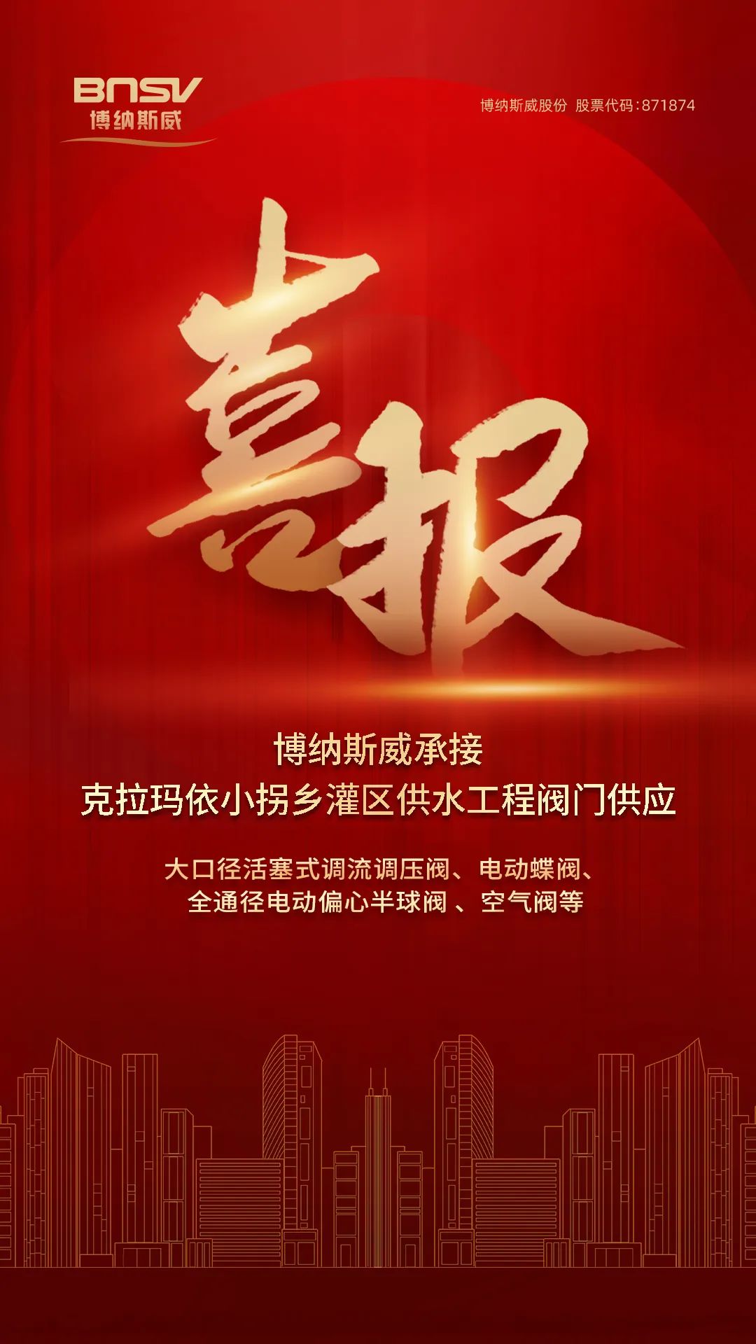喜報(bào)!博納斯威承接克拉瑪依小拐鄉(xiāng)灌區(qū)供水工程閥門供應(yīng)