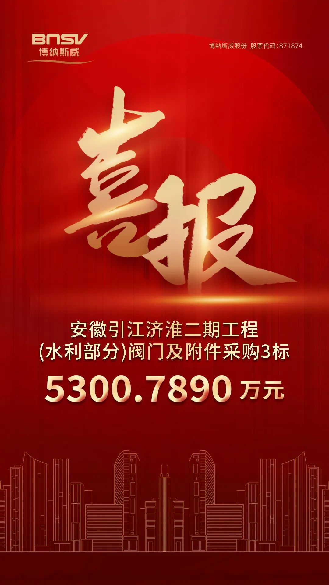 喜報!博納斯威中標安徽引江濟淮二期工程5300.7890萬元