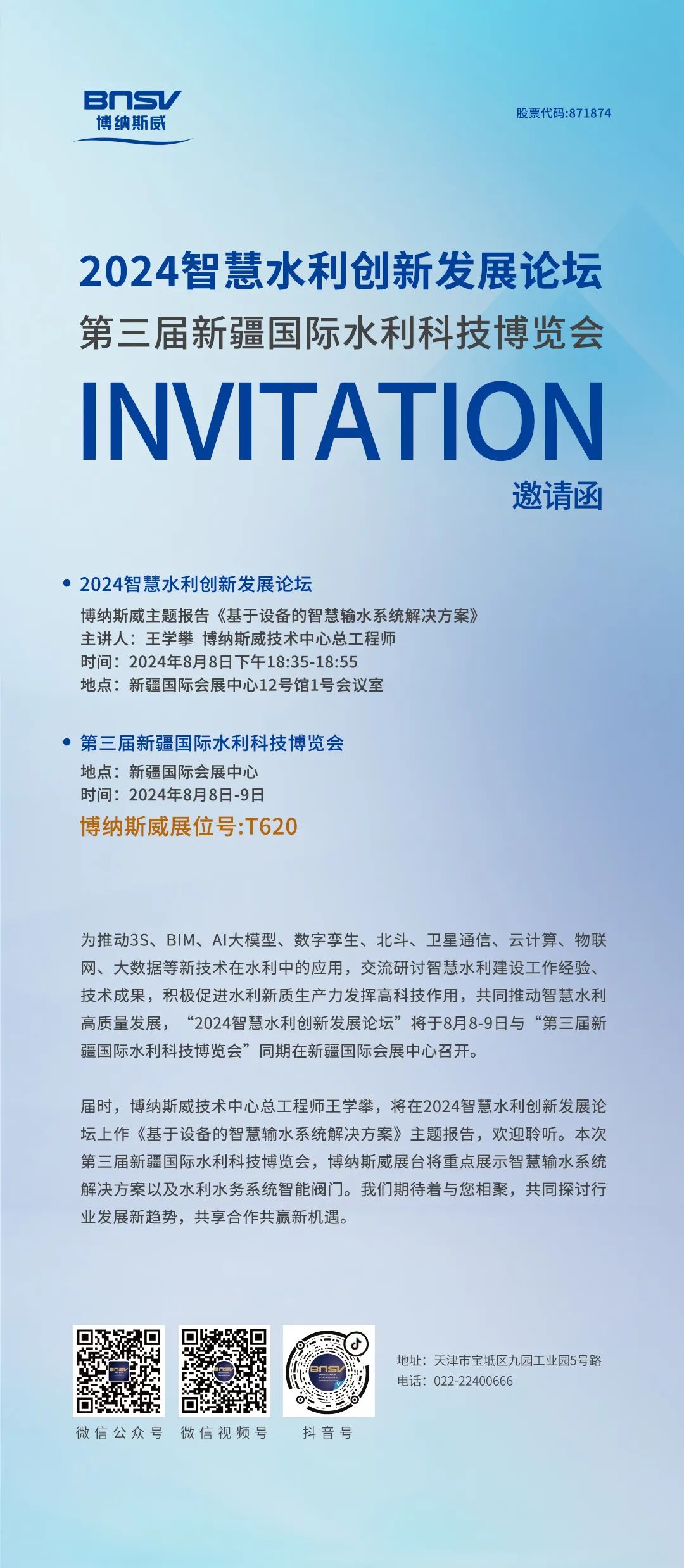 博納斯威 | 誠邀蒞臨2024智慧水利創(chuàng)新發(fā)展論壇&第三屆新疆國際水利科技博覽會